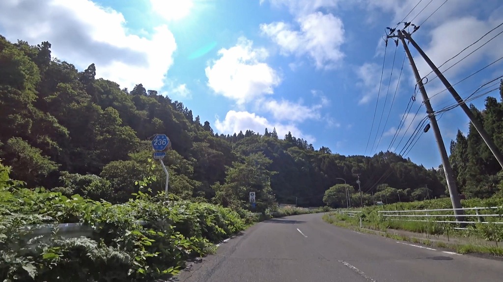 今回はこの宮城県道236号払川町向線を宮城県本吉郡南三陸町にある国道45号との交差点から同じく南三陸町にある宮城県道206号馬籠志津川線との交差点までの約7kmのドライブコースです。