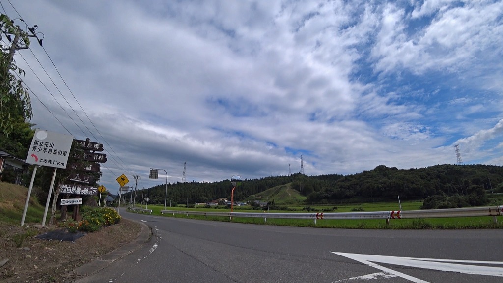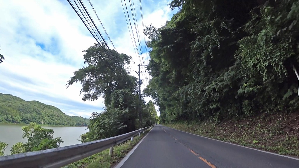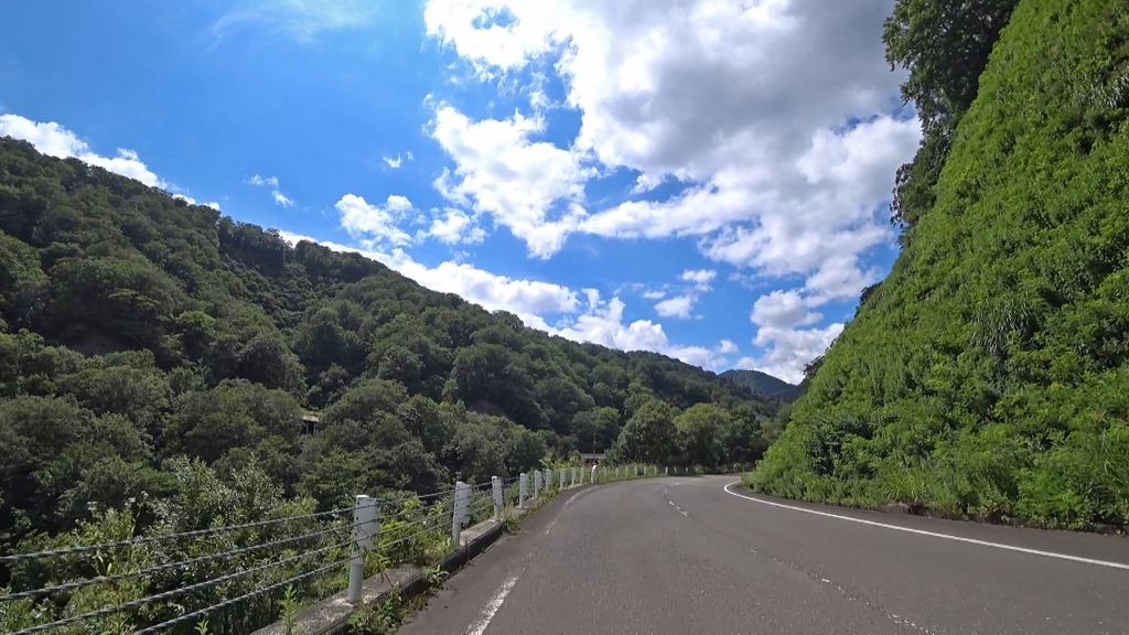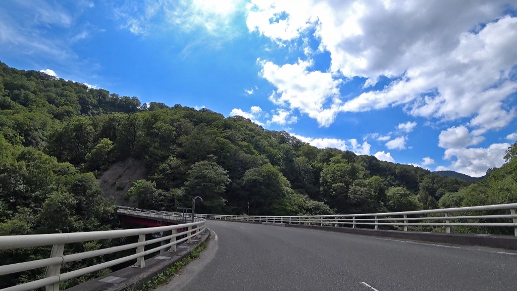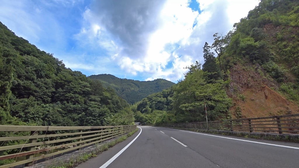 花山ダムの先へ進むと、それまでの山岳路とは趣が変わり、道は次第に平坦な地形へと変化していきます。