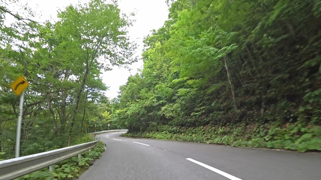 ここまで秋田県側を含め、ここまで連続する急カーブはあまり無く、突然現れるので、注意して下さい。