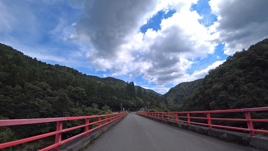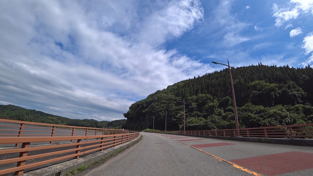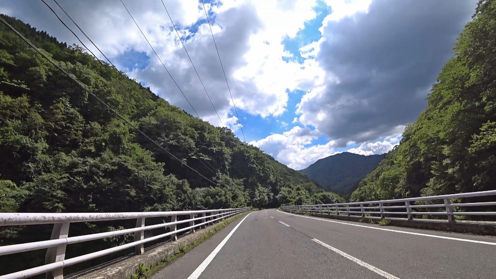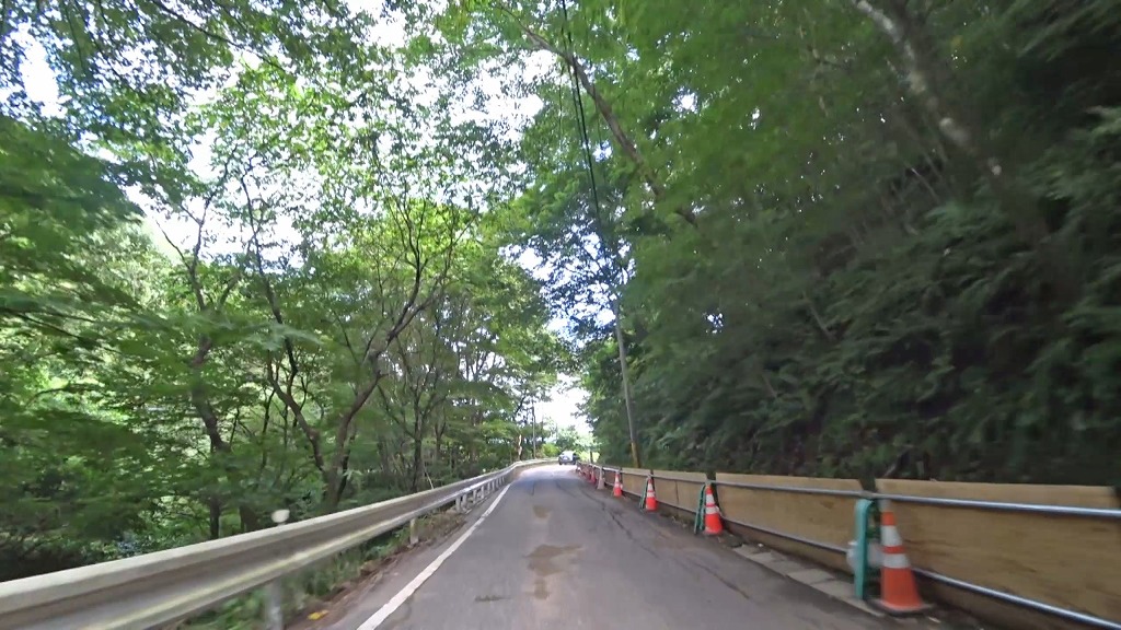 急カーブ区間が終わり、やや狭い橋を渡ります。