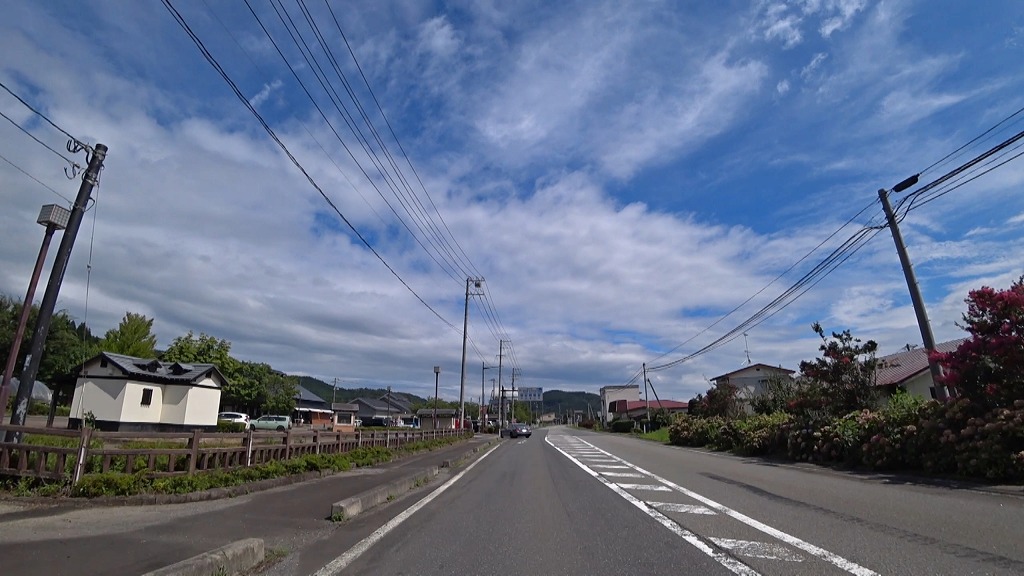 国道4号に付かづくにつれ、交通量が多くなり、民家が建ち並ぶ場所では、やや狭い印象の道。