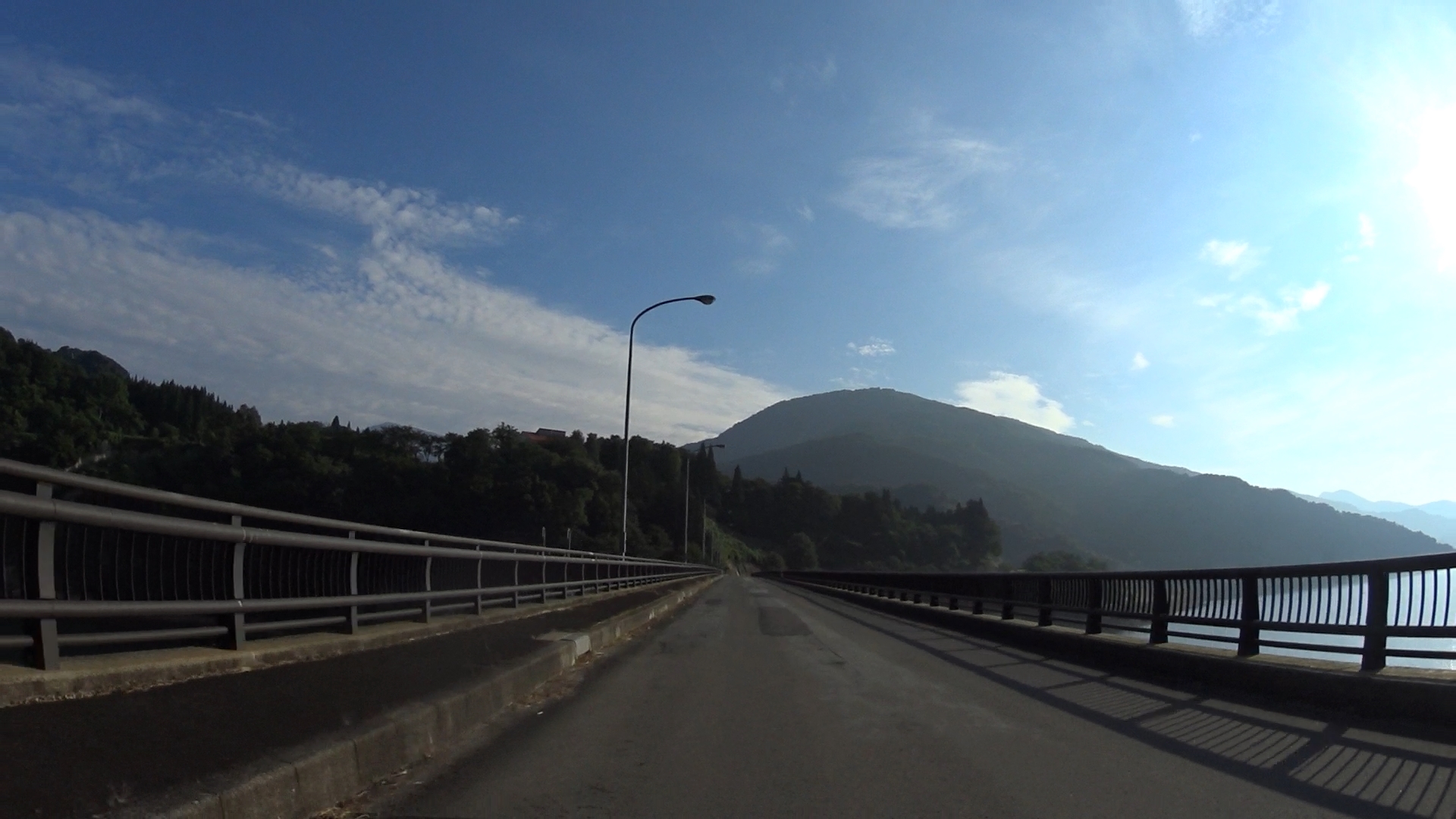 スタートの月山湖湖南休憩所及び月山大橋は月山湖を一望できる眺めの良い場所。